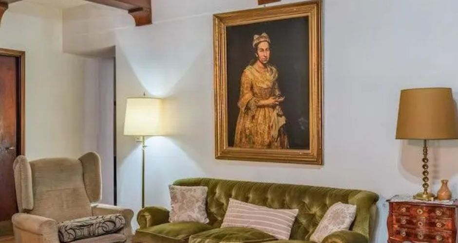 Una de las fotografías del anuncio muestra el Retrato de una dama del maestro italiano Giuseppe Ghislandi (1655-1743) colgado sobre un sofá dentro de una casa de Mar del Plata, una ciudad a unos 400 kilómetros al sur de la ciudad de Buenos Aires.