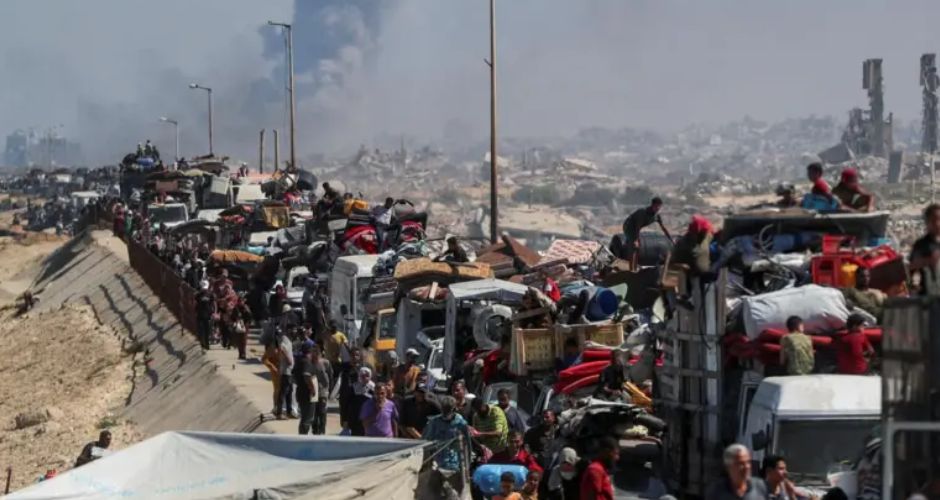 La mayor parte de la población también ha sido desplazada repetidamente; se estima que más del 90% de las viviendas han resultado dañadas o destruidas; los sistemas de salud, agua, saneamiento e higiene han colapsado; y expertos en seguridad alimentaria respaldados por la ONU han declarado una hambruna en la ciudad de Gaza.